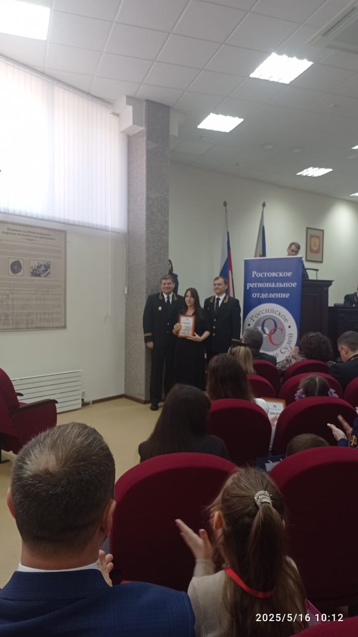 Секретарь судебного заседания Семикаракорского районного суда Субонова М.В. стала призером творческого конкурса «Победный май», посвященного 80-летию Победы в Великой Отечественной войне, заняв 3 место в категории творческих рисунков. 15 мая 2025 г. в Ростовском областном суде состоялась церемония награждения победителей конкурса творческих рисунков и фотографий «Победный май», посвященного 80-летию Победы в Великой Отечественной войне, для судей, государственных гражданских служащих судов Ростовской области, Управления Судебного департамента в Ростовской области, Департамента по обеспечению деятельности мировых судей Ростовской области и их детей. Организатором творческого конкурса выступил Совет судей Ростовской области совместно с Советом Ростовского регионального отделения Общероссийской общественной организации «Российское объединение судей». К участию были приглашены судьи и работники аппарата Ростовского областного Семикаракорского районного суда, Южного окружного военного суда, 15 Арбитражного апелляционного суда, Арбитражного суда Ростовской области, районных (городских), гарнизонных военных судов, мировых судей и работники их аппаратов, судьи, пребывающие в почетной отставке, сотрудники аппаратов Управления Судебного департамента в Ростовской области, Департамента по обеспечению деятельности мировых судей Ростовской области, а также дети сотрудников судебной системы Ростовской области. Коллектив Семикаракорского районного суда Ростовской области поздравляет Субонову Марину Вадимовну, с призовым местом в конкурсе, желаем творческих успехов и реализации новых планов!